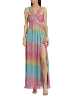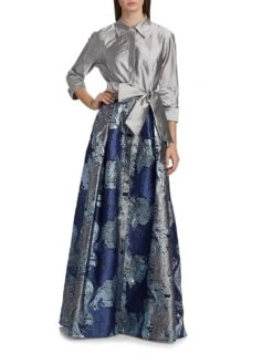 This woven Alberta Ferretti midi-dress features a fitted scoopneck bodice with a concealed button-front closure. A pleated skirt with side on-seam pockets completes the look.