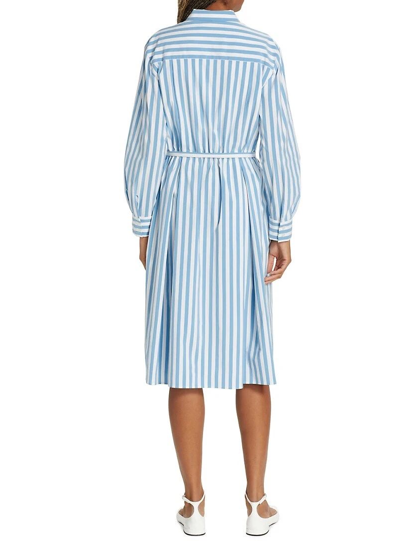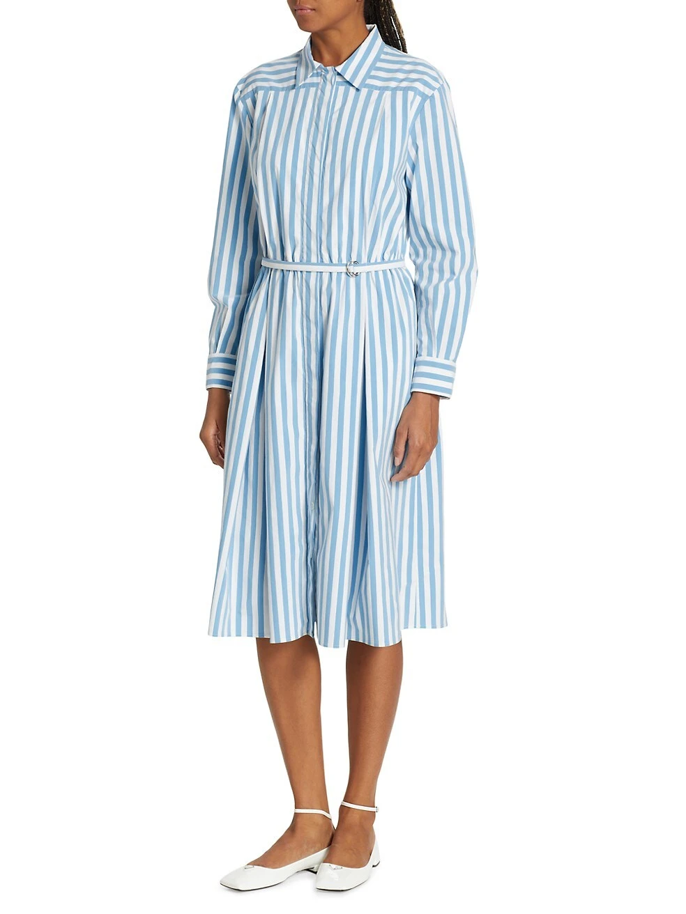 Piazza Sempione’s long-sleeve shirtdress boasts a two-tone striped pattern and thin tonal buckle belt for convertible styling.