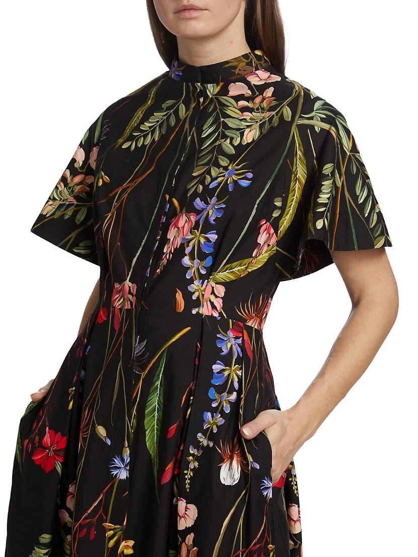This cotton shirtdress is designed in an A-line silhouette with a lovely floral print