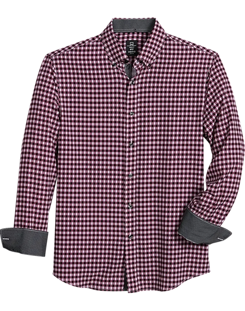 Michael Strahan Modern Fit Button-Down Collar 4-Way Stretch Sport Shirt Pink Check