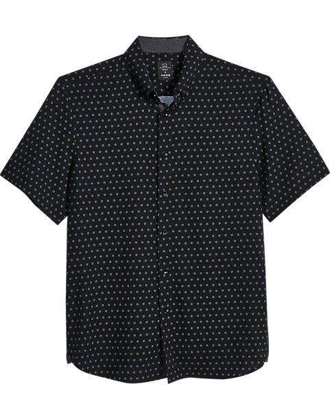 Michael Strahan Modern Fit Four-Way Stretch Short Sleeve Sport Shirt, Black Pinwheel