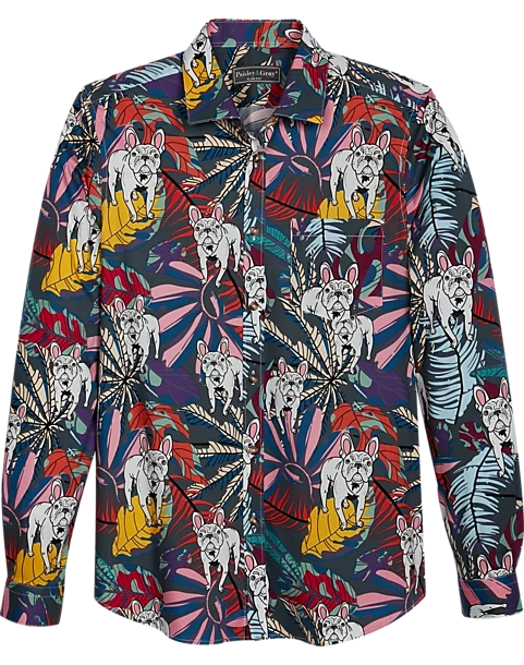 Brilliant hues and bold patterns are the hallmarks of Paisley & Gray. With a Slim Fit, this sport shirt features a fun French bulldog print that brings a little of both to the look.