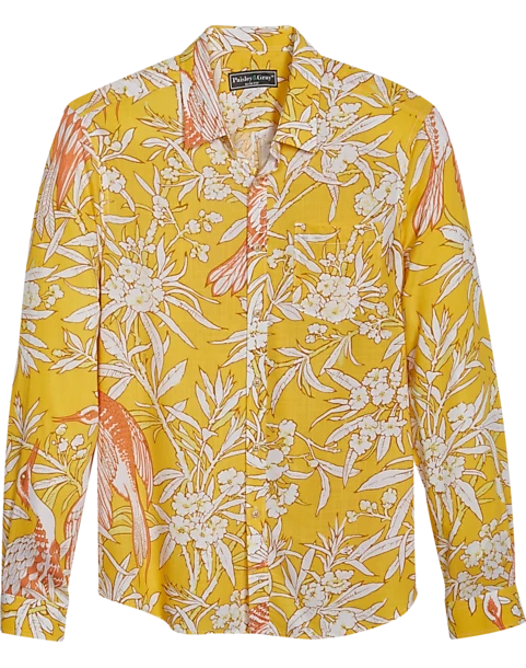 Paisley & Gray Slim Fit Spread Collar Sport Shirt, Yellow Tropical Bird
